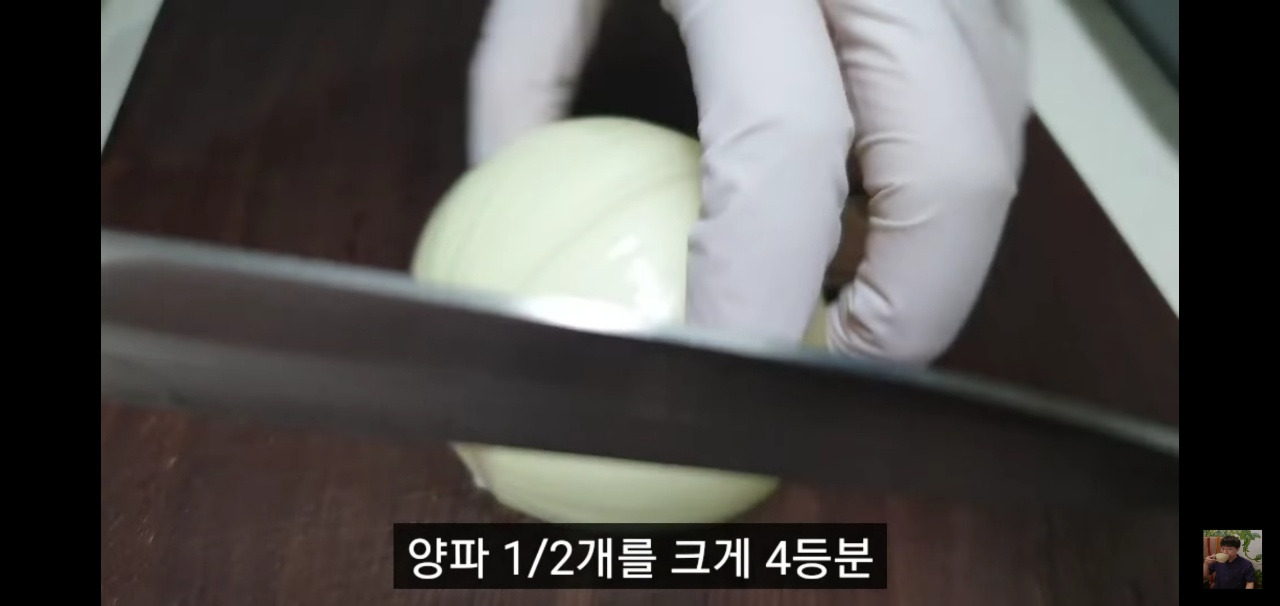 청양고추 5개와 양파 반 개도 큼지막하게 썰어주세요.