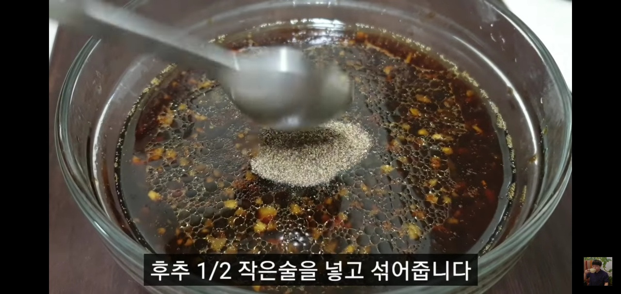 후추도 약간 넣고 잘 섞어주면, 돼지갈비찜을 맛있게 만드는 데 필요한 양념장이 완성됩니다.