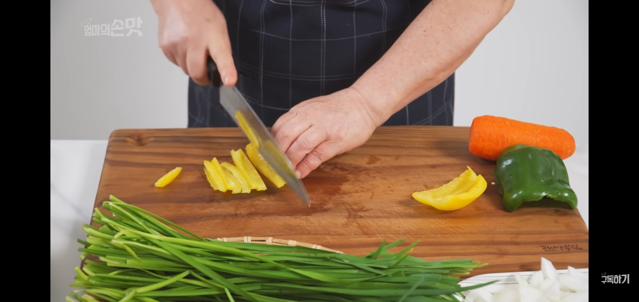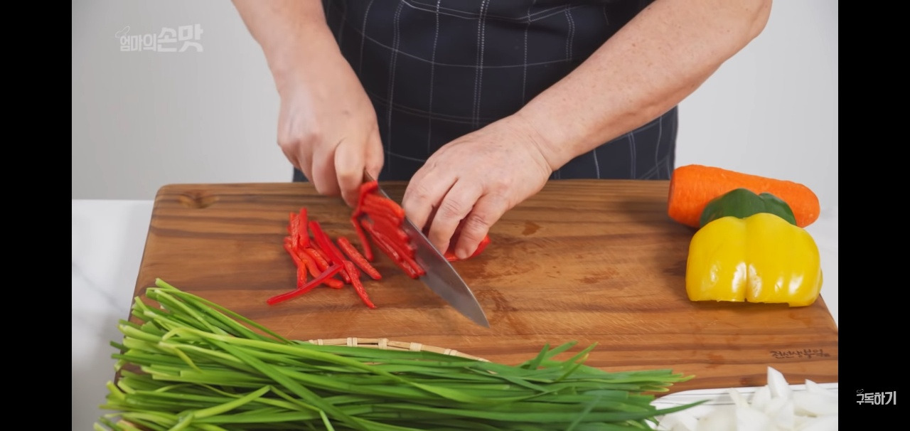 부추는 적당한 길이로 잘라 먹기 좋게 준비해주시면, 잡채 맛있게 만드는 방법에 필요한 재료 손질이 모두 완료됩니다!