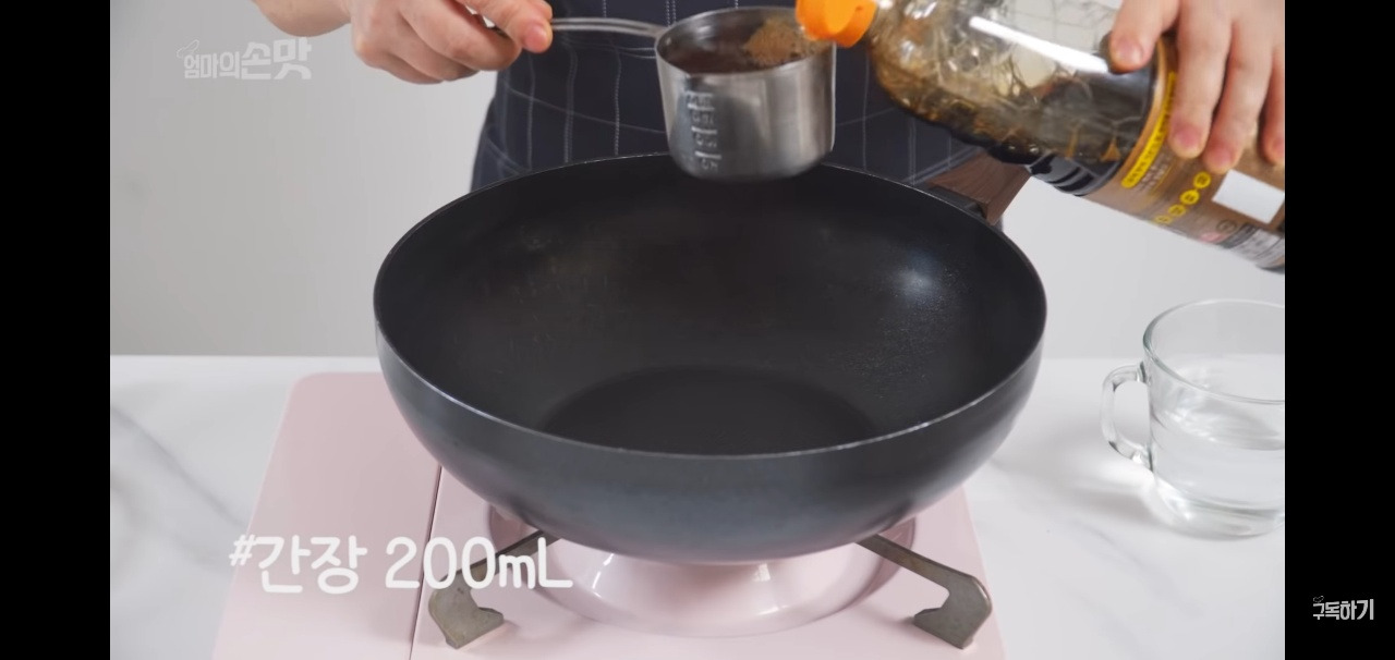 잡채 당면이 불지 않도록 하는 방법을 살펴보겠습니다. 이제 잡채에 들어갈 당면을 익혀주세요. 웍이나 냄비에 간장 200ml를 넣어주세요.