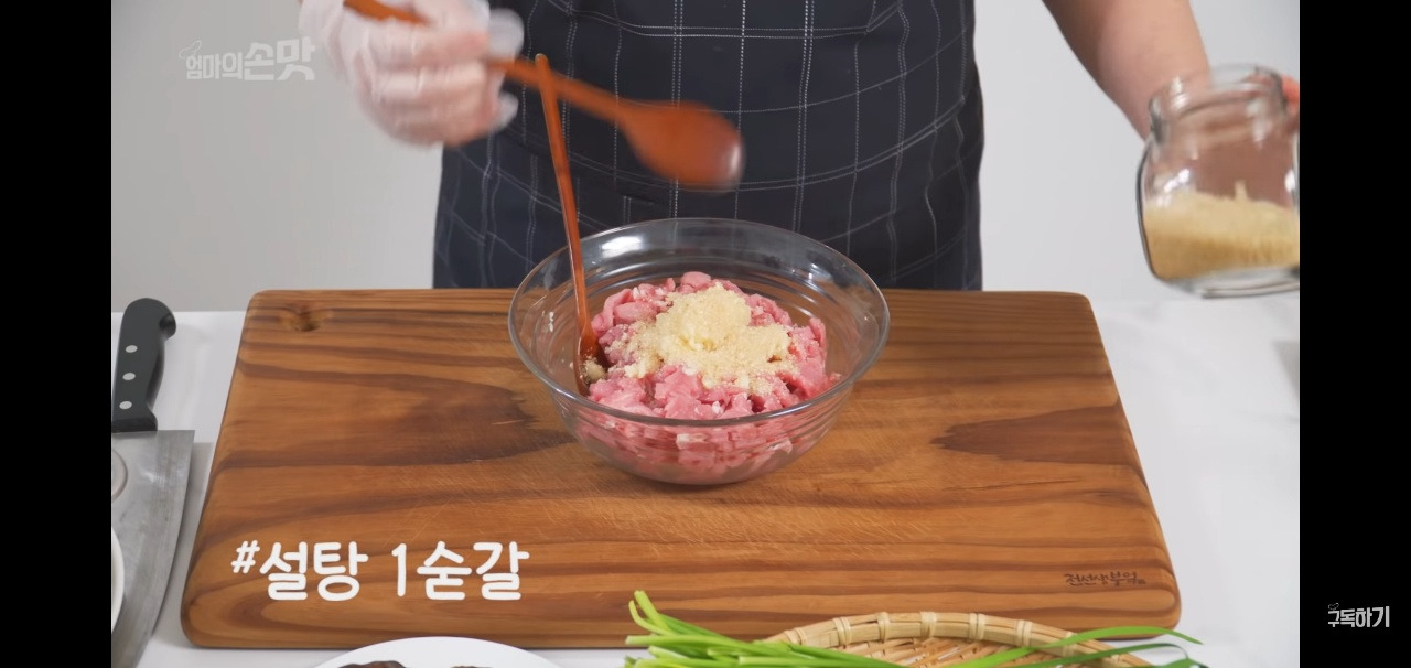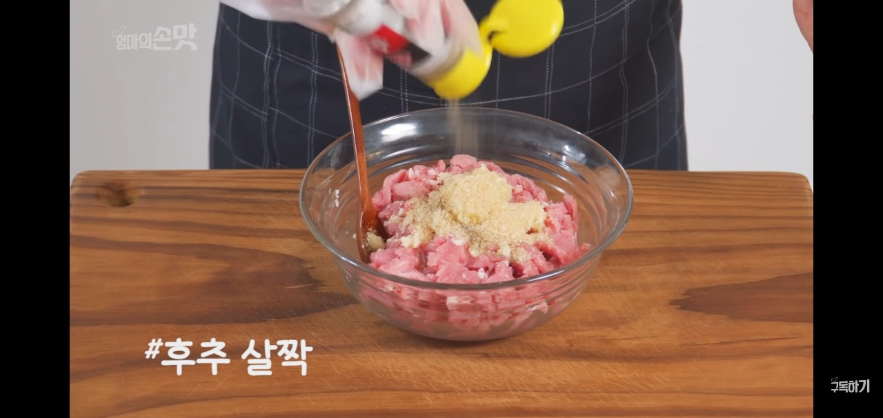 설탕 한 스푼과 후추 약간도 넣어 돼지고기에 맛을 더해주세요.