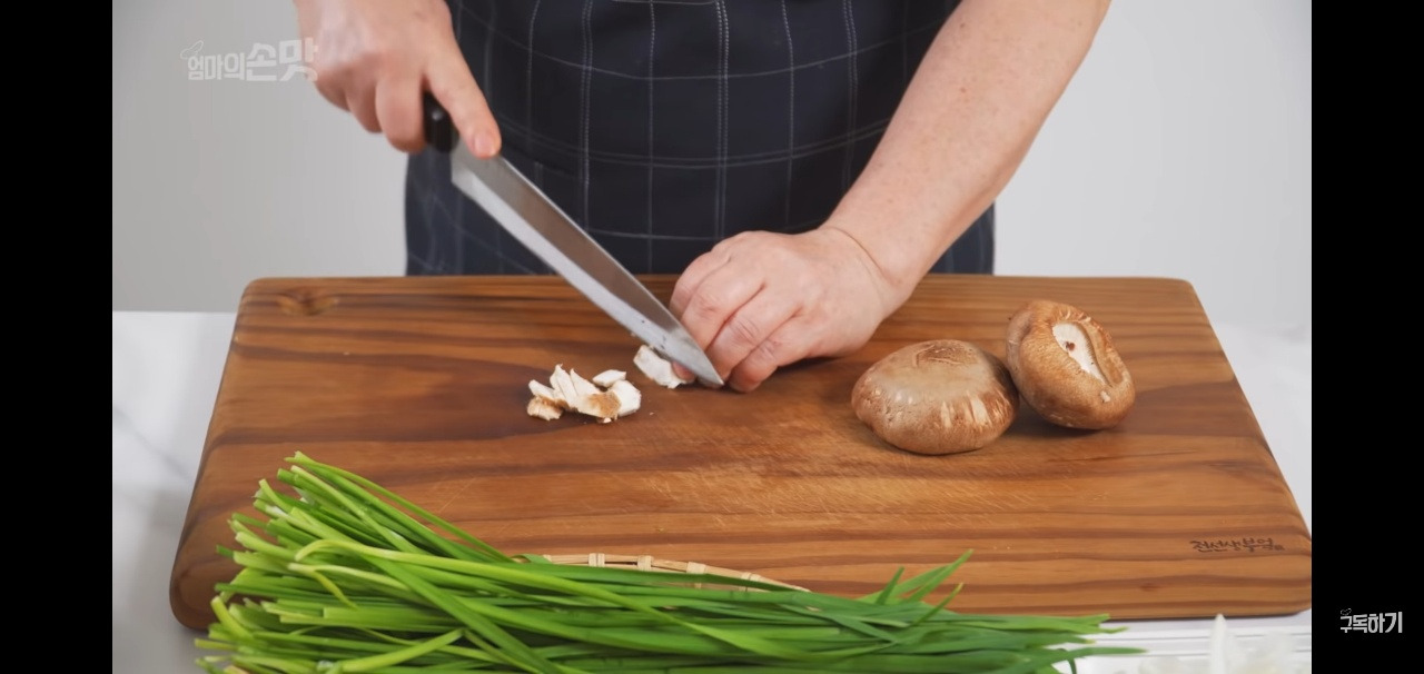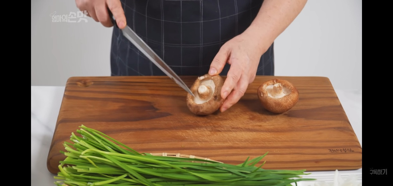 표고버섯은 밑둥을 잘라내 따로 얇게 썰고, 머리 부분도 얇게 썰어 준비해주시면 됩니다.