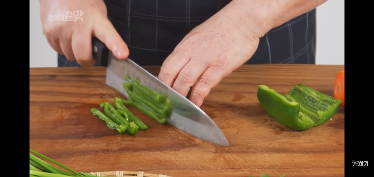 피망과 파프리카도 같은 크기로 채 썰어 준비해주시면 됩니다.