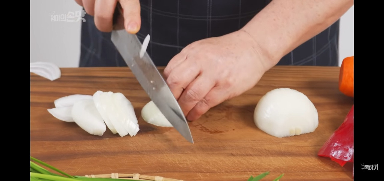 양파는 채 썰기로 썰어 준비해주시면 됩니다.