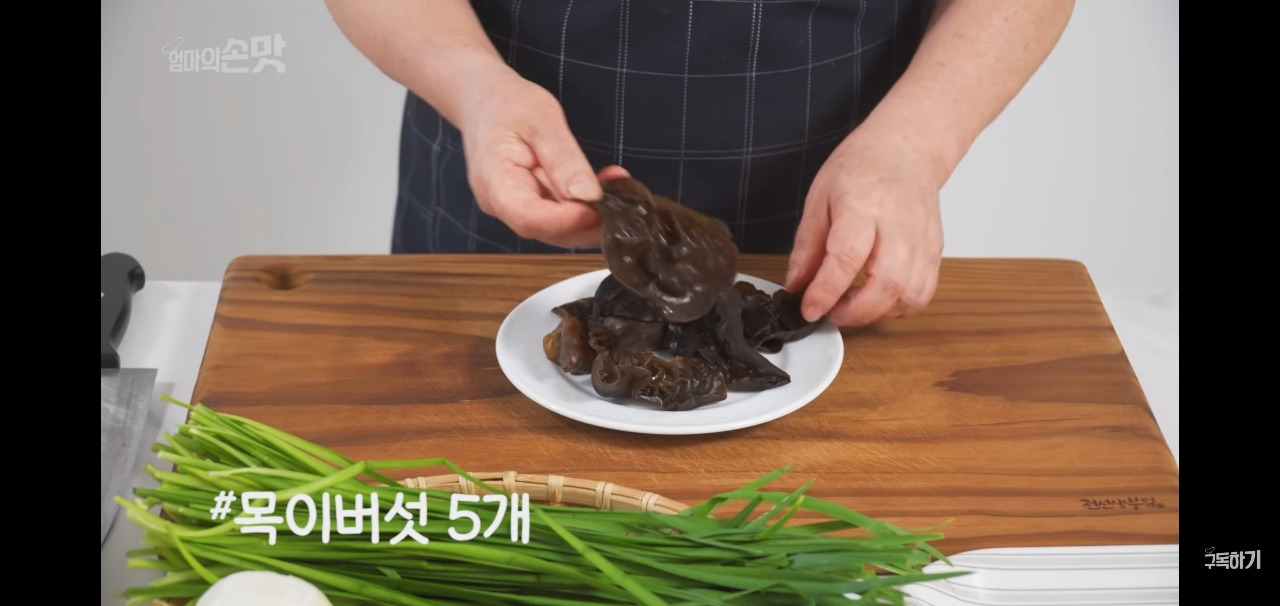 목이버섯 5개는 먹기 좋은 크기로 손으로 찢어 준비해주세요.
