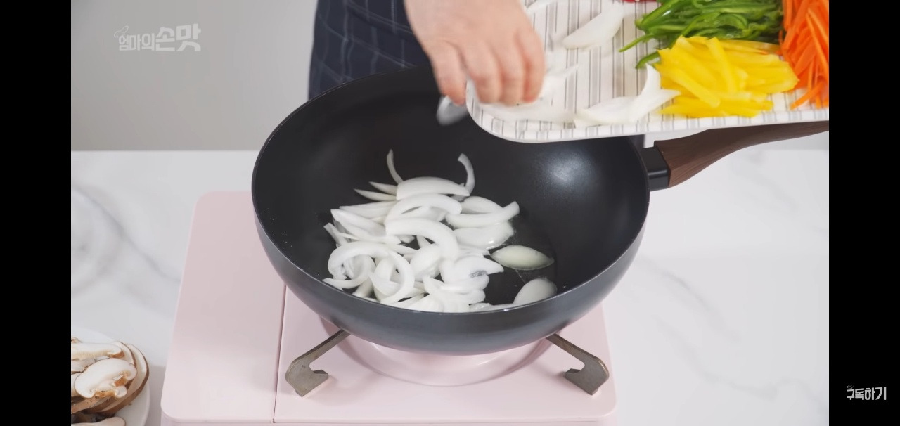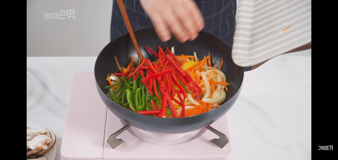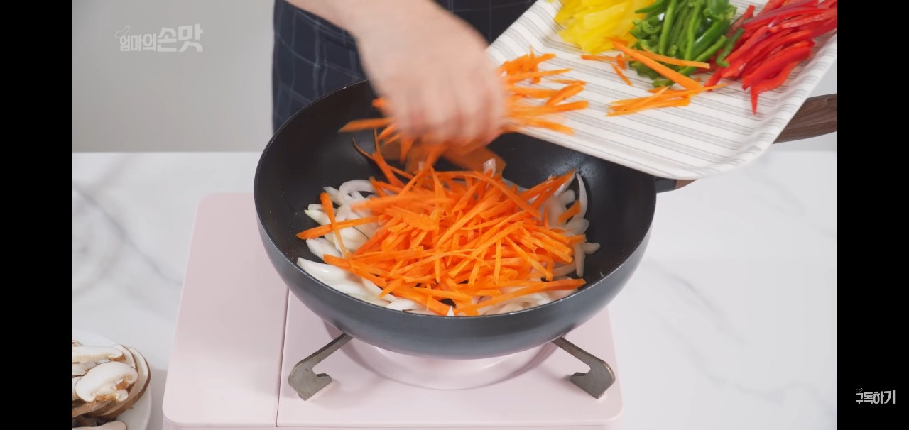 잡채 맛있게 만드는 방법 ④ 야채 볶아주기