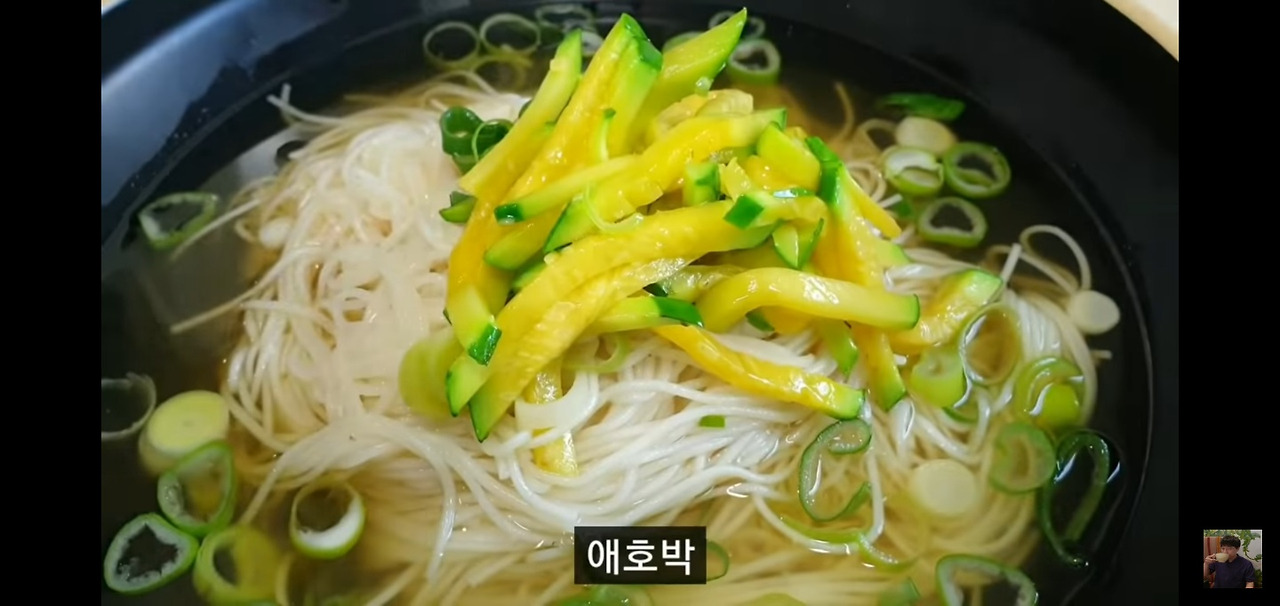 불을 중불로 올리고 썰어 둔 애호박을 물렁해질 때까지 잠시 볶아 주시면 더욱 맛있는 잔치국수를 즐기실 수 있습니다!