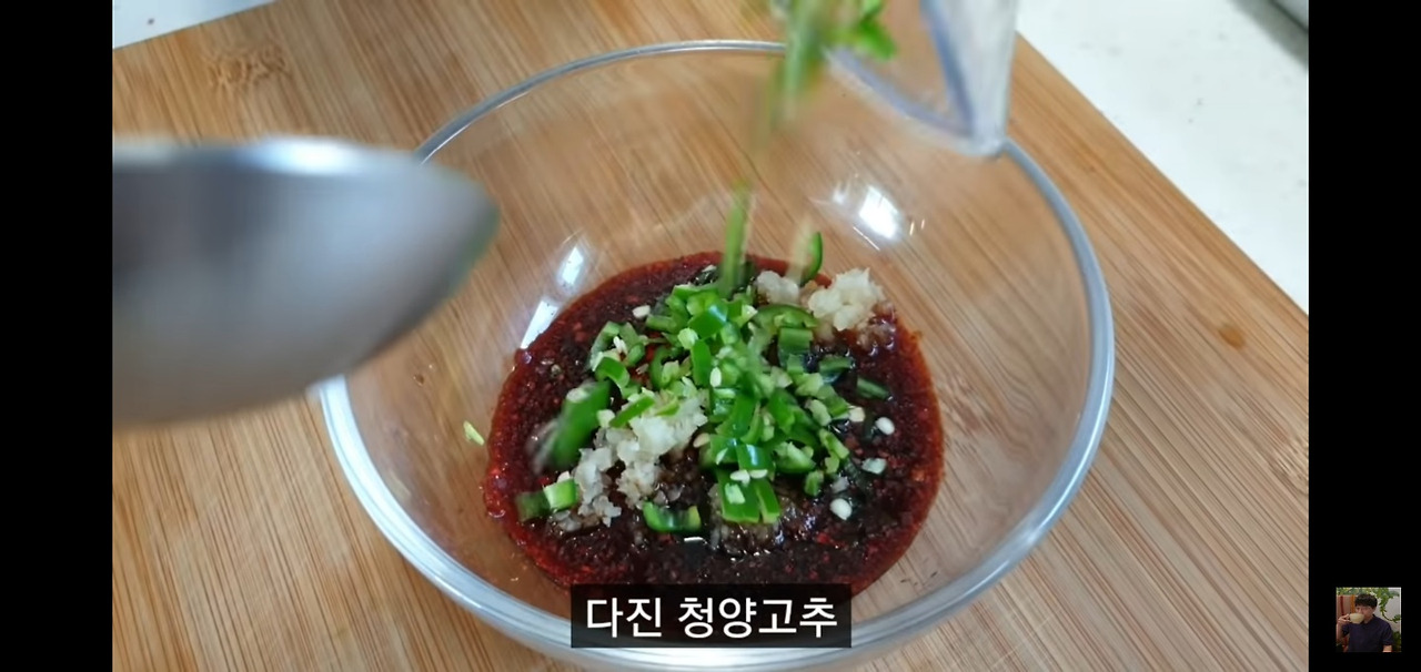 기호에 맞게 다진 청양고추와 다진 파를 넣어 주세요.
