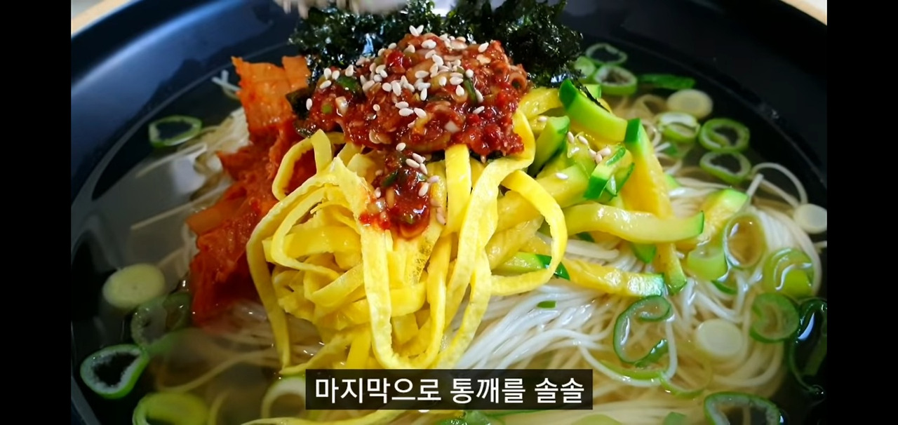 마지막으로 통깨까지 솔솔 뿌려 주시면 잔치국수 맛있게 만드는 법이 완성됩니다!