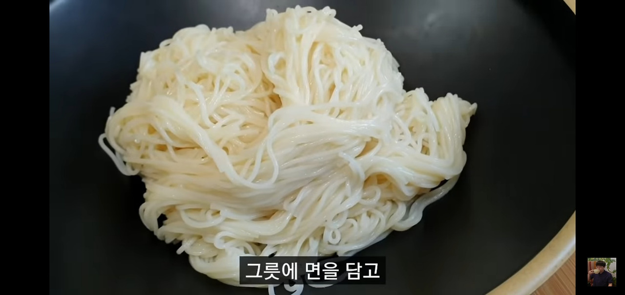 삶아진 소면을 그릇에 잘 담아 주세요.