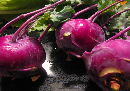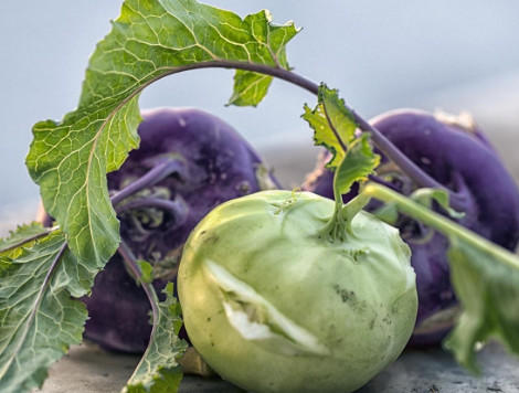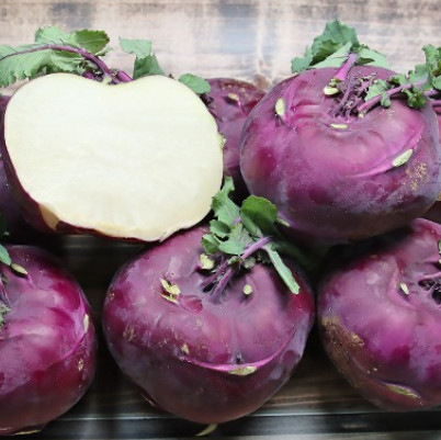 독일 순무라고도 불리는 콜라비는 양배추과에 속하는 구근 채소로, 양배추와 브로콜리를 섞은 듯한 맛이 납니다. 콜라비는 둥근 구근과 밝은 녹색 잎 두 부분을 식용으로 사용하며, 구근은 품종에 따라 연한 녹색이나 짙은 자주색을 띠기도 합니다. 콜라비는 생으로 먹거나 찌거나, 볶거나 삶아 먹을 수 있으며, 비타민 C가 풍부해 샐러드나 다양한 채소 요리에 활용하기 좋은 식품입니다.