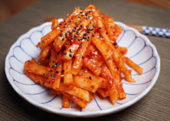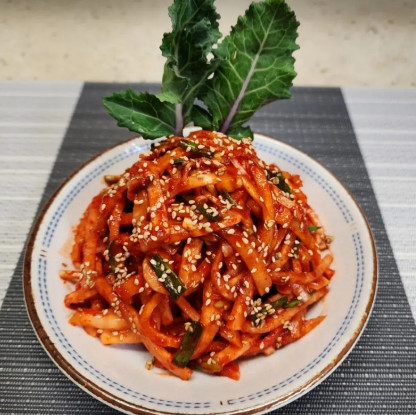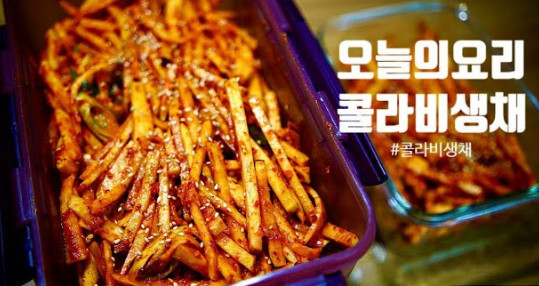 깨끗이 씻은 콜라비의 껍질을 벗기고 채 썬 뒤 고춧가루를 넣어 잘 버무려 30분간 숨이 죽도록 재워주세요. 그 후 식초, 설탕, 소금, 생강청을 넣어 골고루 섞어 버무리고 통깨를 뿌리면 콜라비 생채가 완성됩니다.