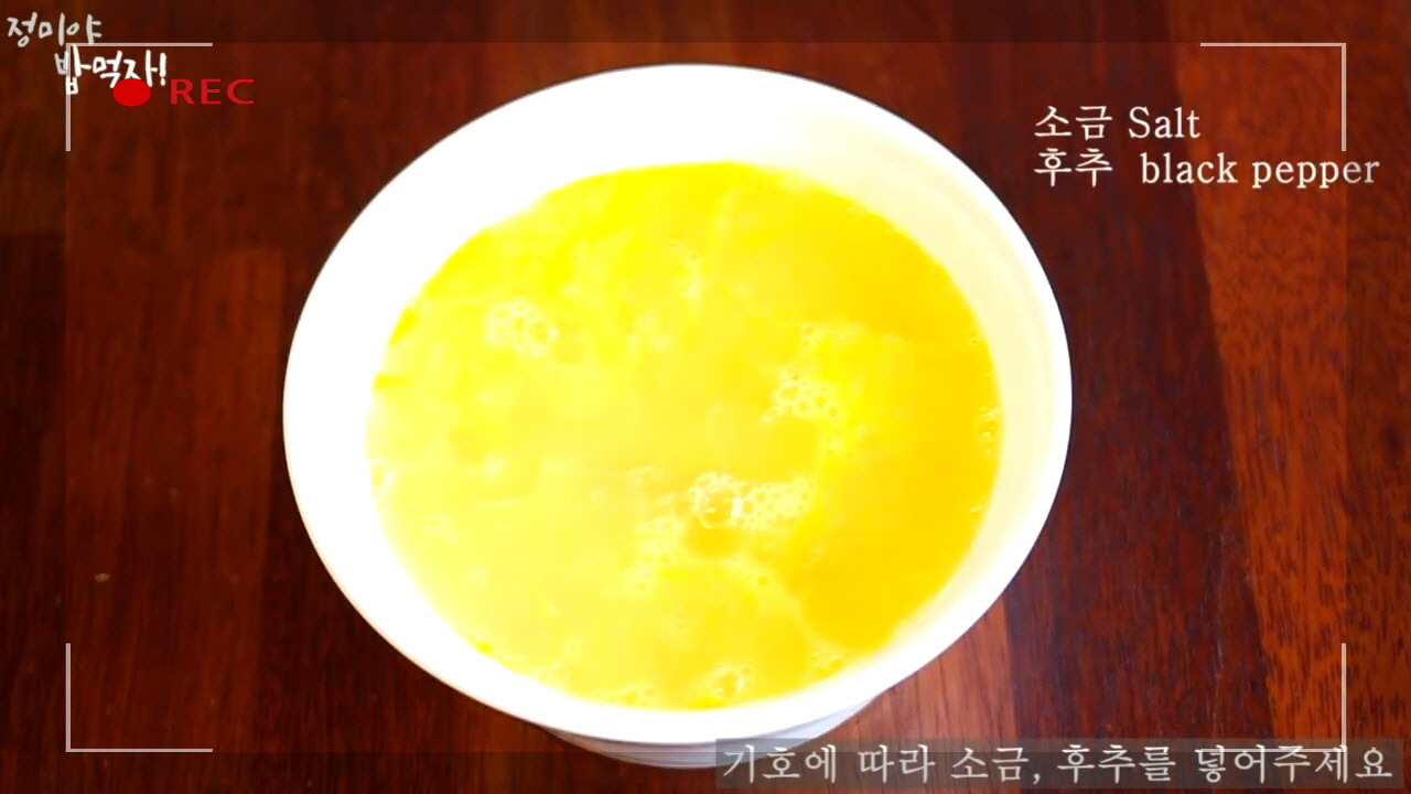 소금과 후추를 넣어 간을 맞춘 뒤, 계란찜의 풍미를 한층 더 깊고 맛있게 완성해 주세요.