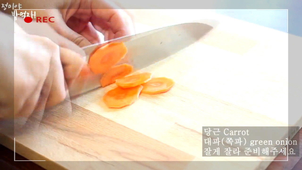 그다음으로 준비한 당근과 대파를 넣고 고르게 섞어주세요.