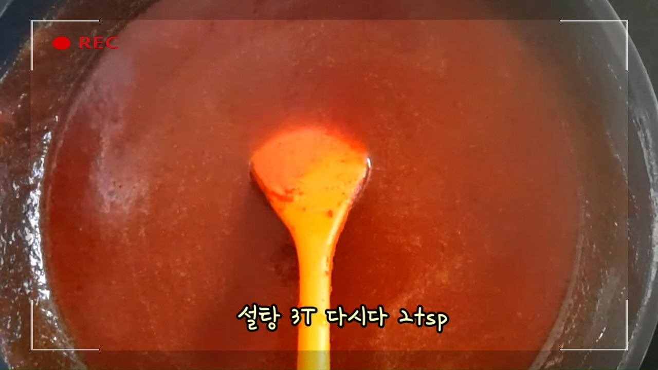 이렇게 체에 걸러 넣으면 양념장이 덩어리지지 않고 더욱 부드럽게 완성됩니다.