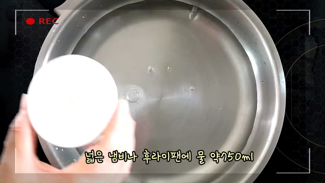 넓은 냄비나 프라이팬에 물 750ml를 부어주세요.