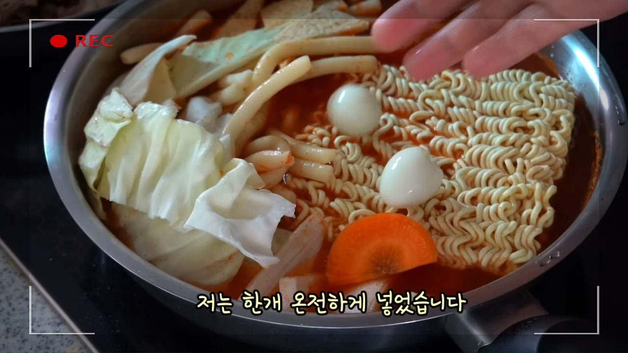 라면사리가 있다면 반 개 정도 넣어주시고, 더 좋아하신다면 한 개 전부 넣어도 괜찮습니다.