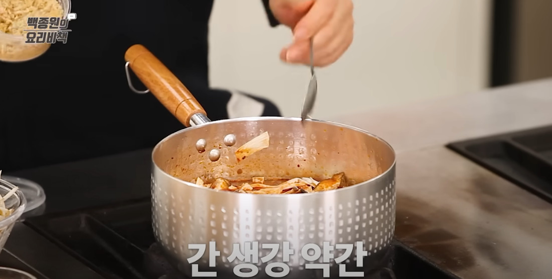 6. 간 마늘과 간 생강을 넣습니다. 이때 간 생강은 아주 조금만 넣어야 하며, 간 마늘의 약 1/10 정도만 넣거나 아예 생략해도 무방합니다.