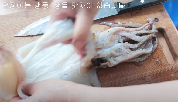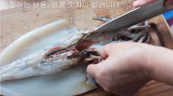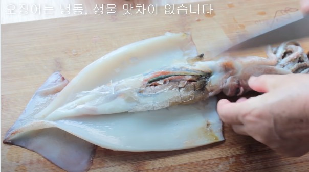 냉동 오징어는 살짝 해동한 후 손질해 주세요.
