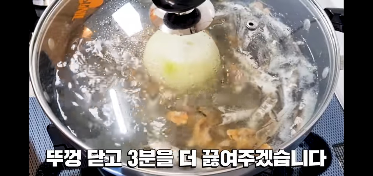 다시마를 건져낸 후, 뚜껑을 덮고 3분 정도 더 끓여 주세요.