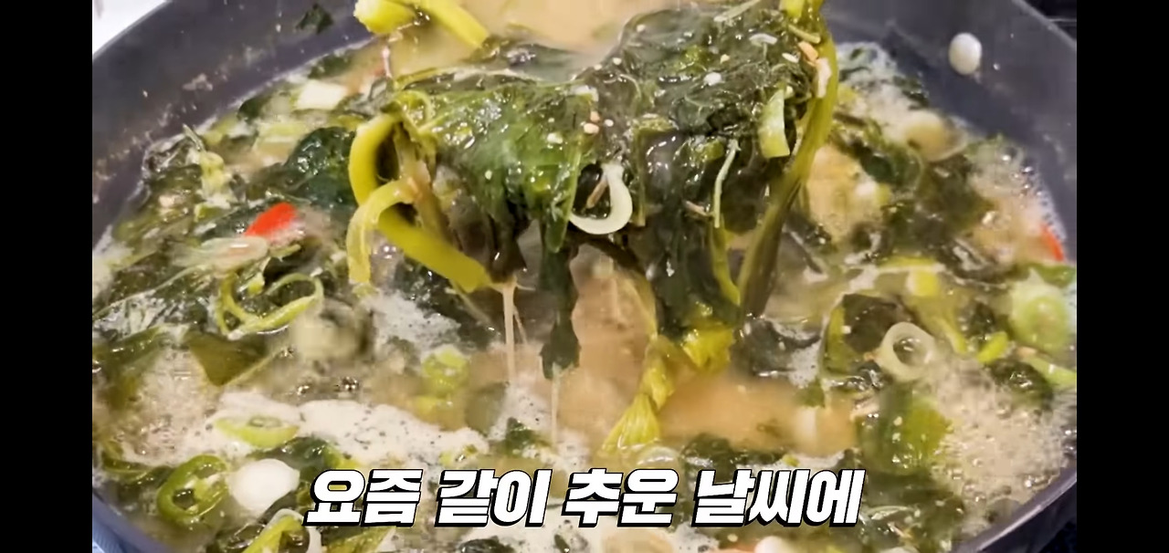이제 본격적으로 아욱국을 끓일 차례입니다.
