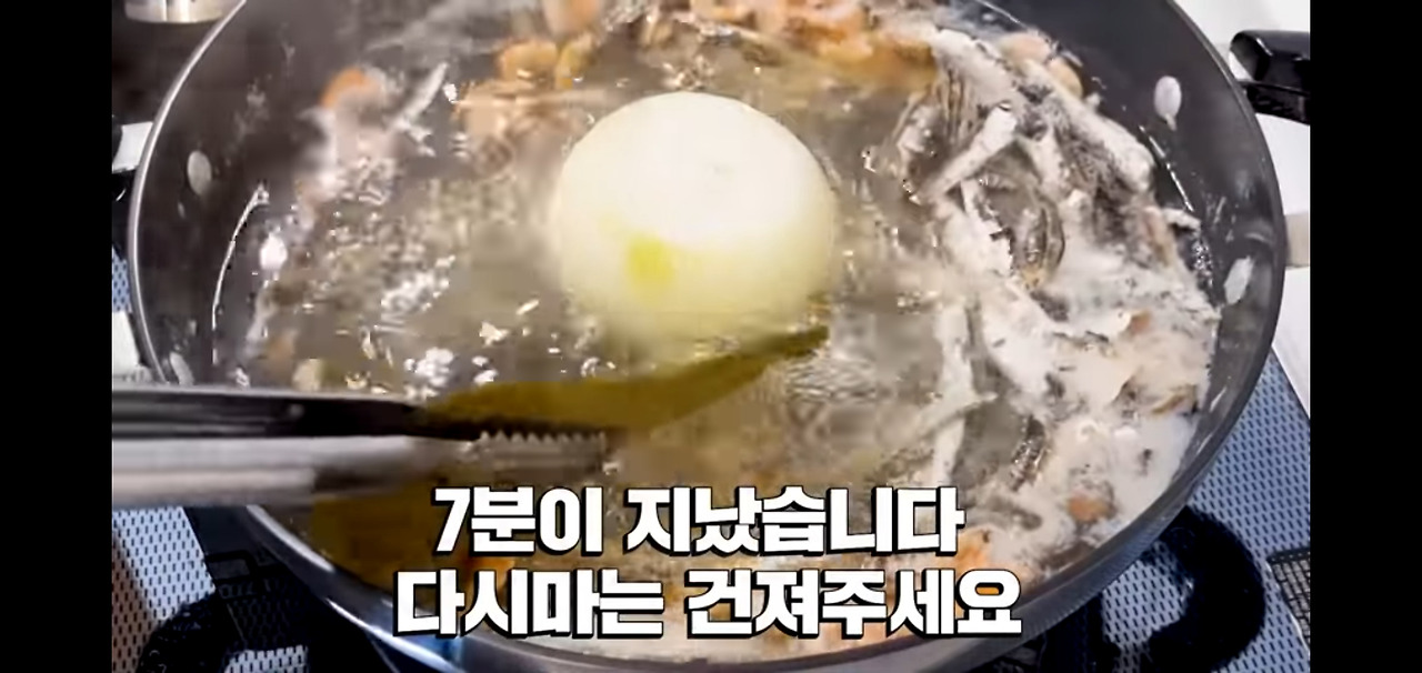 뚜껑을 덮고 약 7분 정도 끓인 뒤, 다시마를 건져내 주세요.