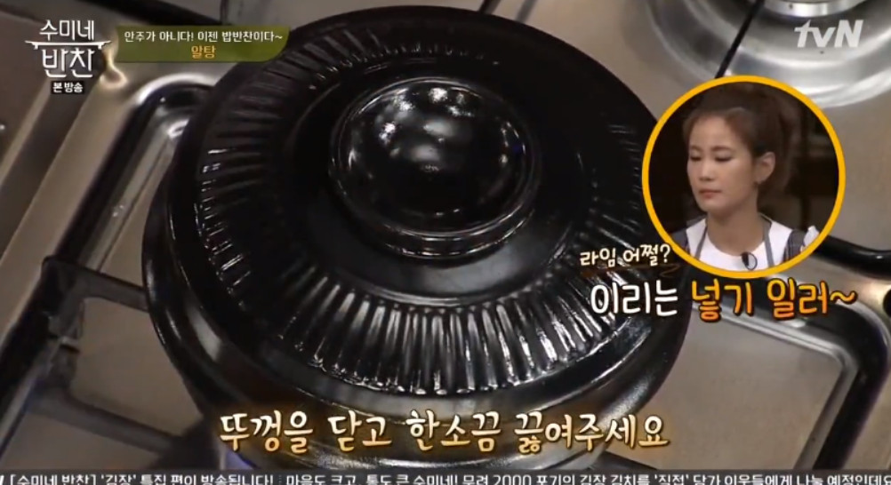 이제 뚝배기 뚜껑을 덮고 한소끔 끓여주세요.