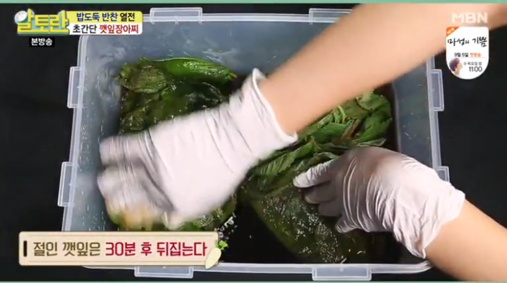절임장을 부은 깻잎은 1시간 동안 절여주세요.