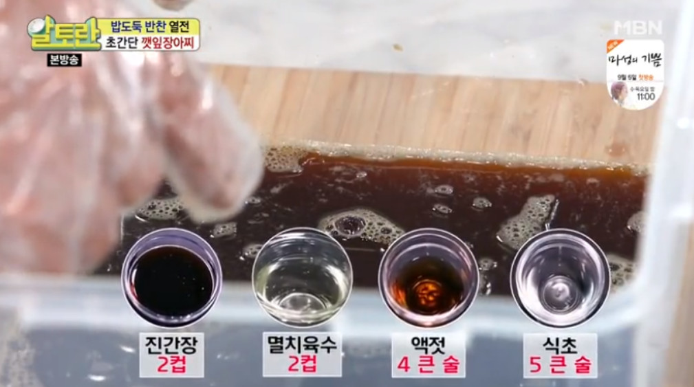 절임장은 이렇게 만드세요. 진간장 2컵, 멸치 육수 2컵, 멸치액젓 4큰술, 식초 5큰술을 넣고 센 불에서 끓여주시면 됩니다. 간단하죠? 여기서 식초를 넣는 이유는 깻잎의 쓴맛을 제거하기 위해서라고 합니다.