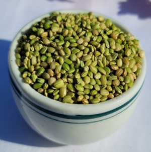 녹미는 말 그대로 녹색 빛을 띠는 쌀을 의미합니다. 현미쌀의 한 종류로, 백미와 함께 밥을 지어도 쌀에 녹색빛이 물들지 않는 것이 특징입니다. 식감은 쫀득하면서도 찰기가 있고, 밥을 지으면 외관상 현미밥과 비슷한 잡곡밥이 완성됩니다.