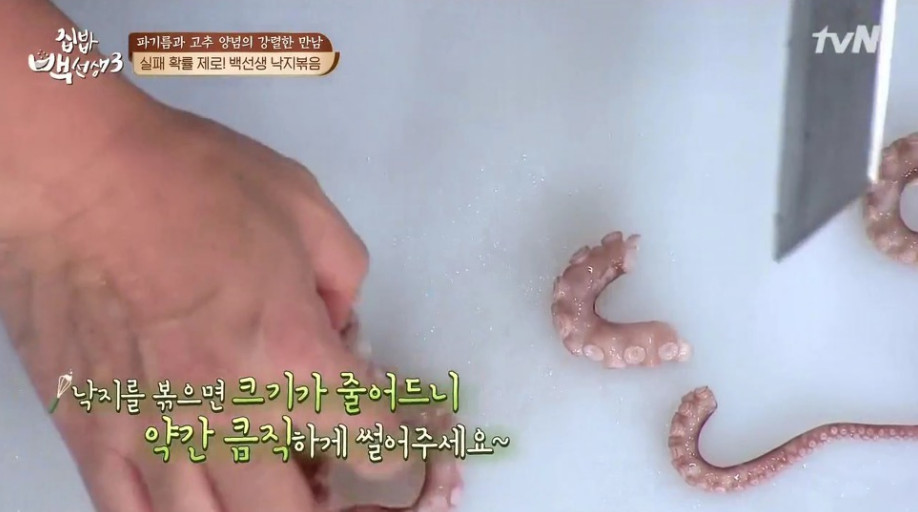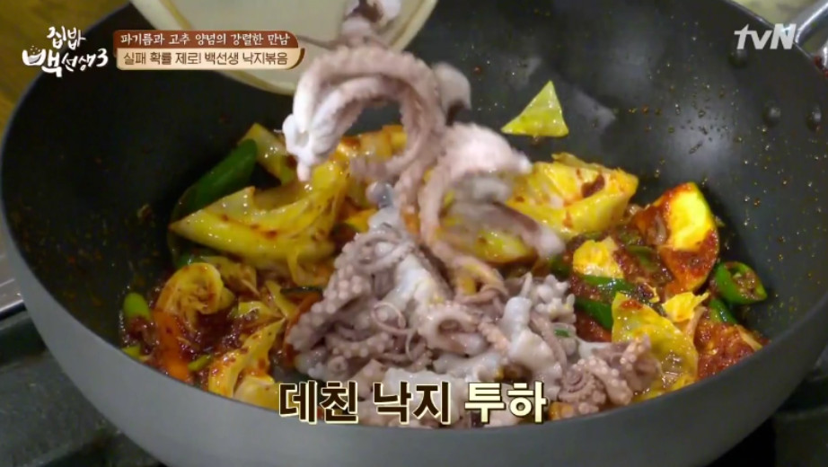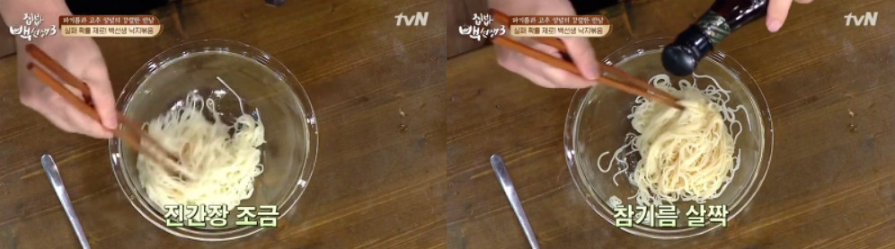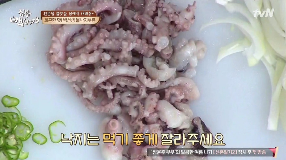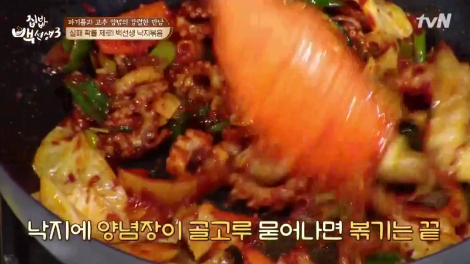 ※ 입맛에 따라 낙지볶음을 다양하게 응용하실 수 있습니다. 백종원 선생님은 소면을 삶아 함께 드시는 방법도 추천하셨는데요, 끓는 물에 소면을 삶은 뒤 진간장과 참기름을 약간 넣어 밑간을 하고 낙지볶음과 곁들이면 잘 어울립니다.