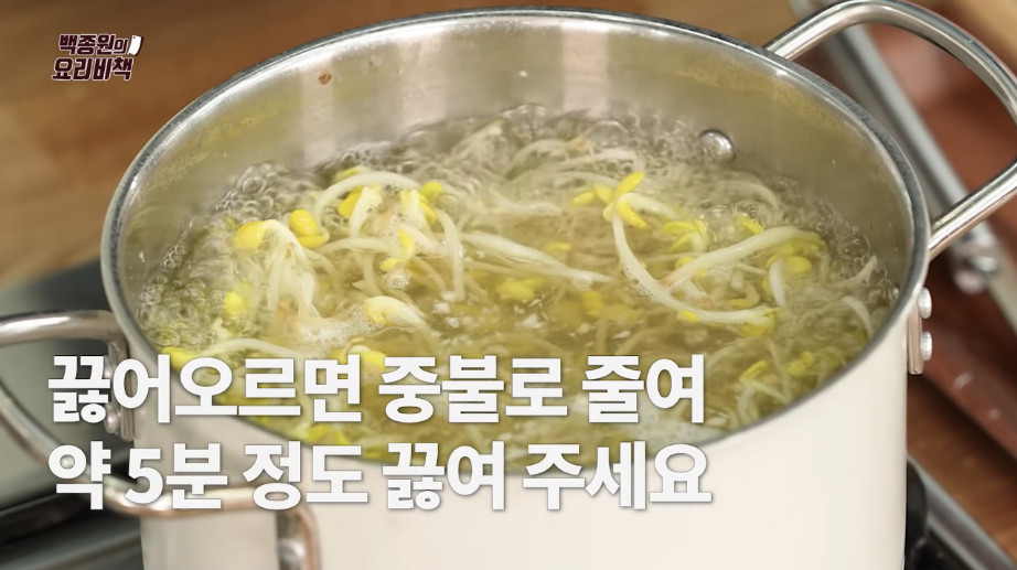 ※ 이때 백종원 선생님께서 알려주신 가장 중요한 포인트는 미원인데요, 콩나물국에 미원을 약 1/6큰술 정도 넣어주면 훨씬 간단하게 맛을 낼 수 있다고 합니다. 만약 미원이 없다면 꽃소금 대신 맛소금을 사용하셔도 된다고 하네요.