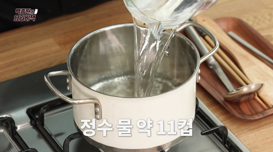 3. 냄비에 정수물 약 11컵(2L)을 넣어 주세요.