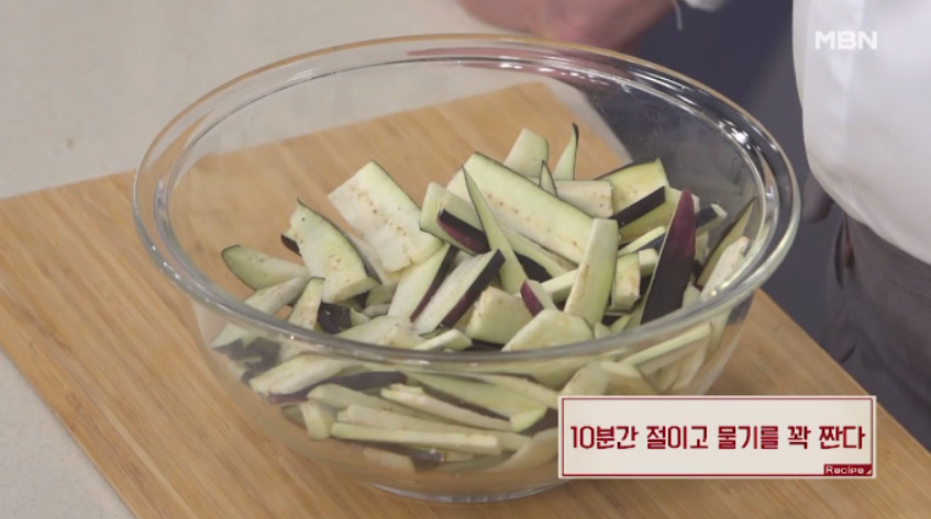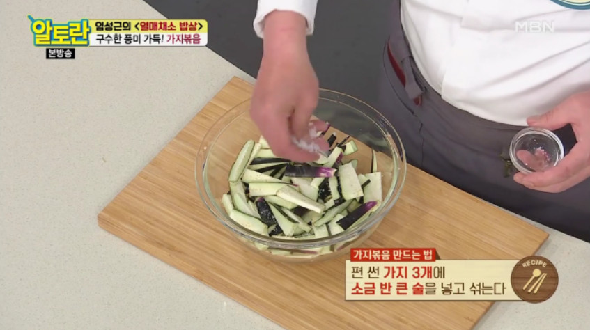 2. 첫 번째 팁은 가지를 소금에 살짝 절여주는 것입니다. 이렇게 하면 가지 특유의 식감을 싫어하시는 분들도 훨씬 쉽게 드실 수 있습니다.
