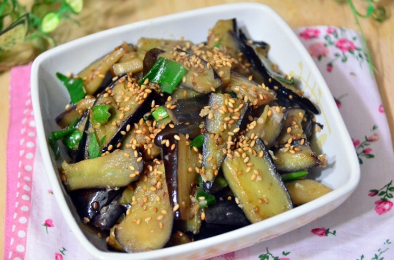 12. 마지막으로 참기름 1큰술과 통깨 1큰술을 넣어 마무리하면 가지볶음이 완성됩니다.