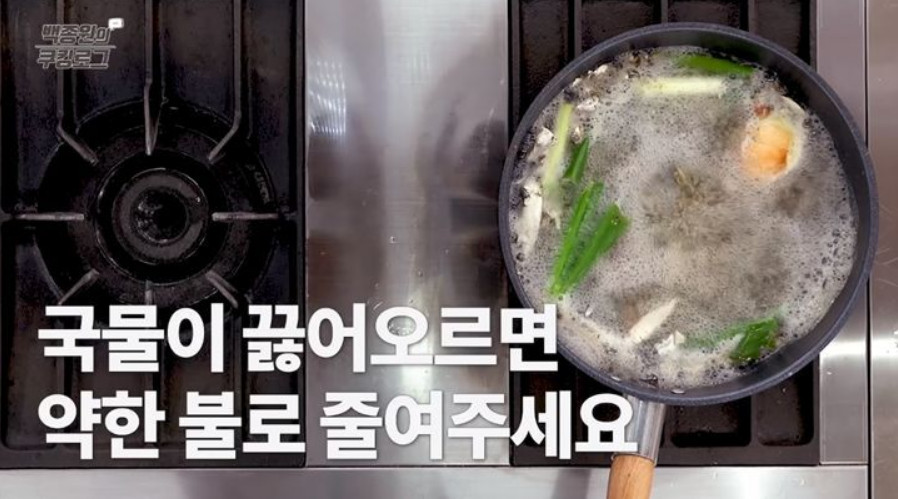 5. 국물이 끓기 시작하면 약불로 줄여 약 1시간 정도 더 끓여줍니다.