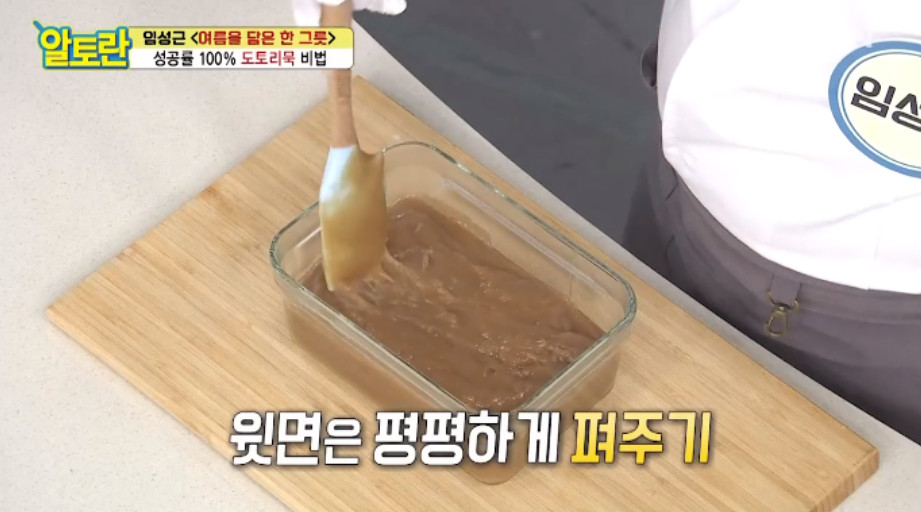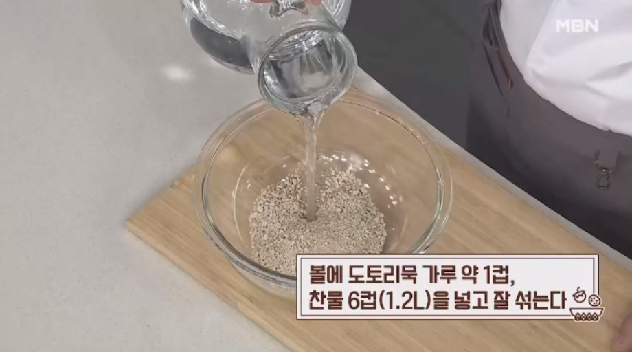 사실 도토리묵은 도토리 가루를 물에 담가 물을 따라내고 앙금만 모아서 끓인 후 식히면 되니까 크게 어렵지 않게 만들 수 있다고 하는데요, 맛도 좋고 건강에도 도움이 되는 도토리묵을 직접 한번 만들어 보시기 바랄게요. 그럼 임성근 요리연구가님이 알려주신 레시피를 하나하나 살펴보도록 하겠습니다.