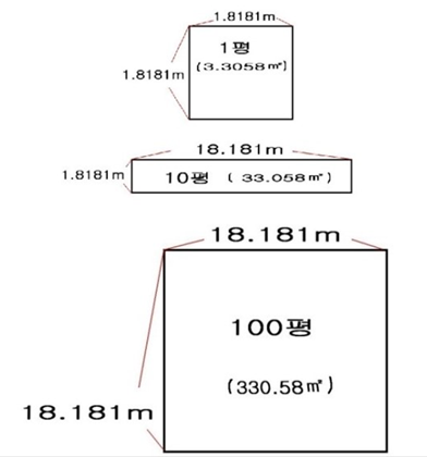 ※ 예를 들어, 84㎡를 평으로 변환하고 싶다면 84 ÷ 3.3058 ≒ 25(평)