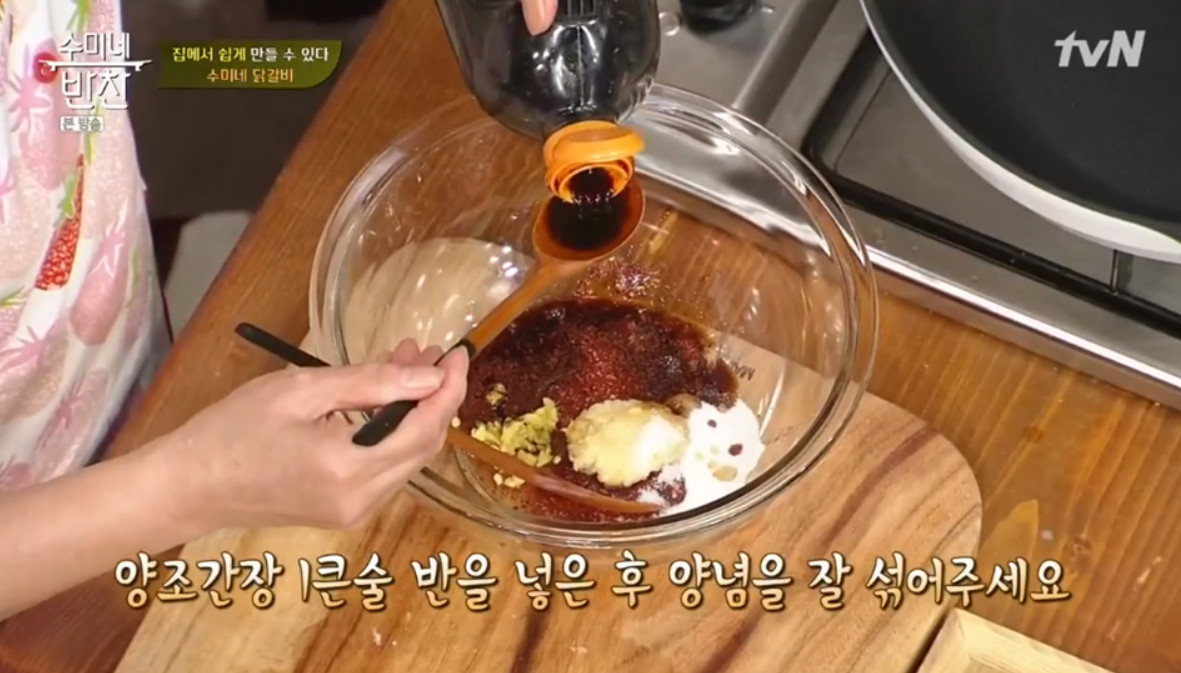 8. 마지막으로 양조간장 1큰술 반을 넣고, 모든 양념이 고르게 섞이도록 잘 버무려 주세요.