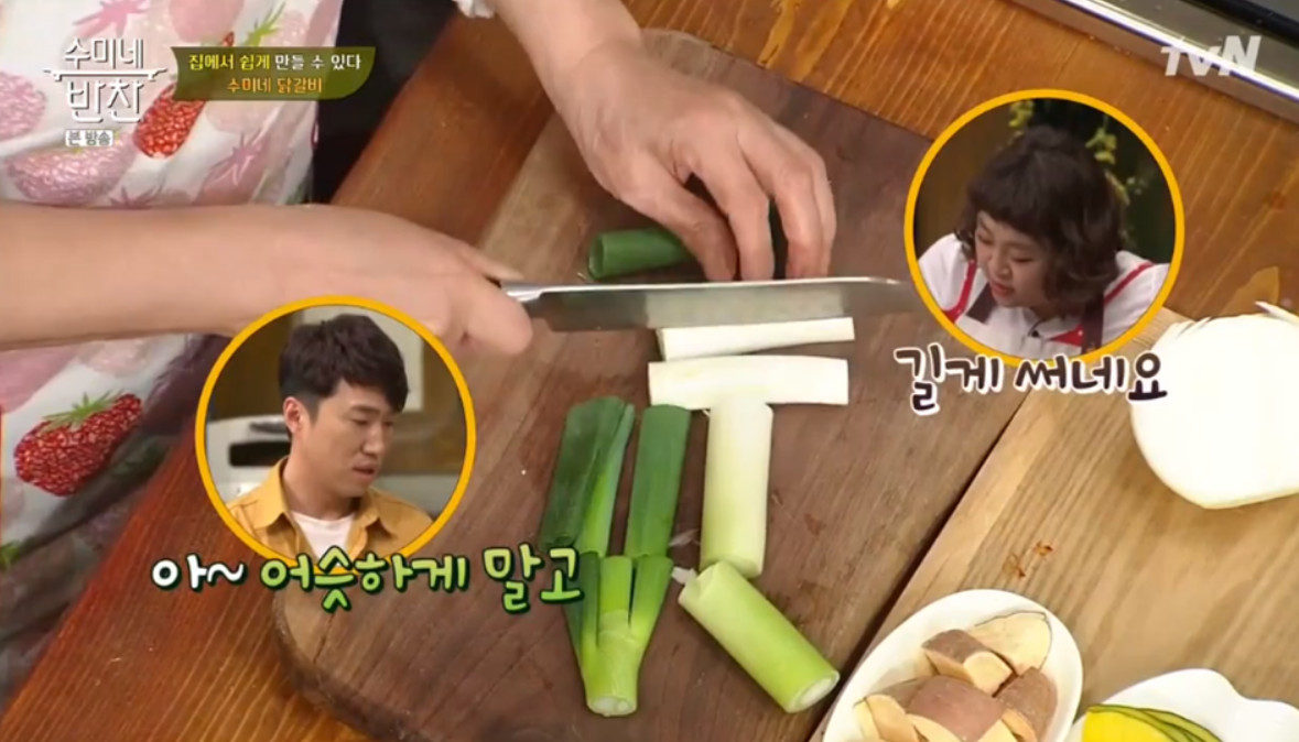 11. 대파는 비스듬하게 길게 썰어 주세요.