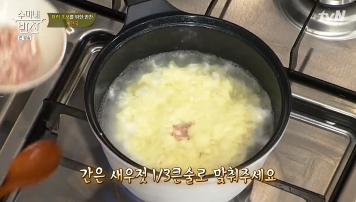 6. 계란국 간은 새우젓 1/3큰술로 맞춰주세요.