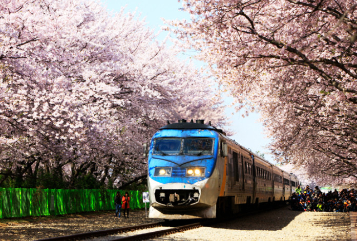 진해 경화역은 한국에서 가봐야 할 아름다운 50곳 중 5위로 선정된 곳으로, 현재 기차가 정차하지 않는 역이지만 군항제 기간에는 벚꽃 테마역으로 벚꽃을 감상하기 위해 수많은 관광객들이 모여드는 곳입니다. 이곳은 약 800m의 벚꽃터널이 장관을 이루는 곳으로 군항제 기간 진해에서 가장 인기 있는 벚꽃 구경 장소입니다. 기차 배경이 벚꽃의 운치를 더욱더 깊게 해 주는 경화역은 예전에는 군항제 기간에만 임시열차를 운행하였으나 현재에는 임시열차도 운행하지 않고 코레일과의 협조를 통해 테마 열차를 역 한복판에 포토존 용으로 전시해놓고 있습니다.