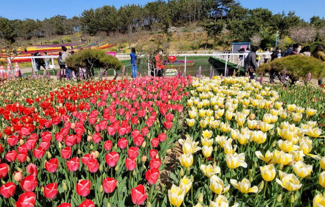 태안 꽃지해수욕장은 말이 필요 없는 국내 최고의 해안 중 한 곳으로 손꼽히는 곳입니다. 할미, 할아비바위로 떨어지는 낙조가 아름답기로 유명한 꽃지해수욕장에는 바로 뒤편에 꽃지해안공원이 위치해 있는데, 2002년 안면도 국제 꽃박람회의 성공을 기원하고 국민에게 새로운 휴식처를 제공하기 위하여 조성된 테마파크입니다. 이곳에는 화려한 꽃들이 많으며 4월에는 튤립축제, 빛축제 등 다양한 행사가 열립니다. 따라서 따스한 봄에 꽃들의 대향연이 펼쳐지는 아름다움이 장관을 감상하러 방문하시길 적극 추천드리는 장소입니다.