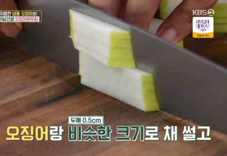 얇게 썰수록 식감이 더 좋다고 하니 참고하세요.