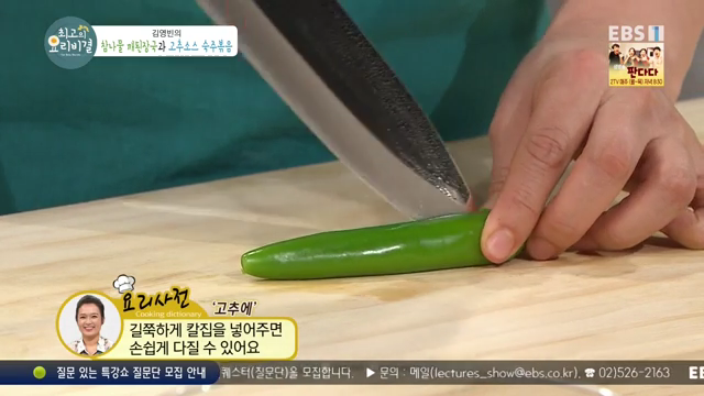 고추소스를 만들어볼게요. 고추는 길게 칼집을 여러 번 넣어주면 쉽게 다질 수 있어요. 청양고추, 풋고추, 홍고추를 씨를 빼지 않고 다져서 준비합니다.