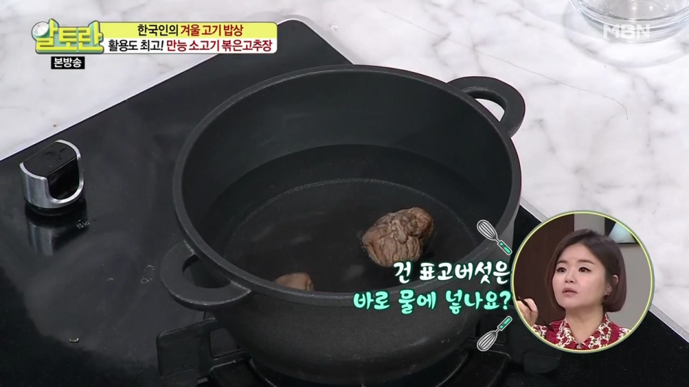 육수내기 : 물(1L), 북어대가리(1개), 다시마(1장), 고추씨(2큰술), 건표고버섯(2개)