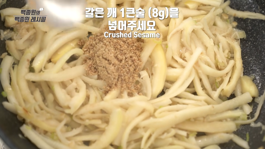 도라지나물은 다른 방식으로도 만들 수 있는데요. 파기름을 내는 대신, 도라지에 소금 등 재료를 모두 넣고 힘껏 주물러 뽀얗게 물이 나오게 한 뒤, 그대로 팬에 넣어 볶는 방법도 있습니다. 본인의 취향에 맞는 조리법을 선택하시면 돼요.