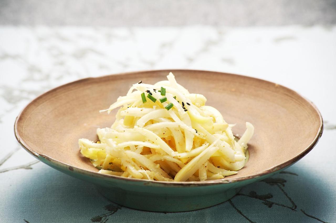 4. 쓴맛이 빠진 도라지는 흐르는 물에서 꼼꼼히 주물러가며 씻은 뒤, 물기를 잘 제거해 주세요.