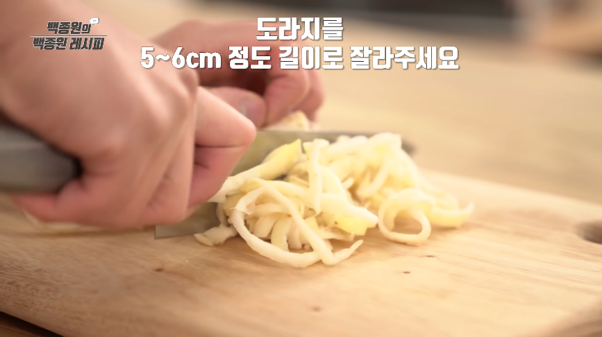 5. 도라지는 약 5~6cm 길이로 알맞게 잘라 주세요.