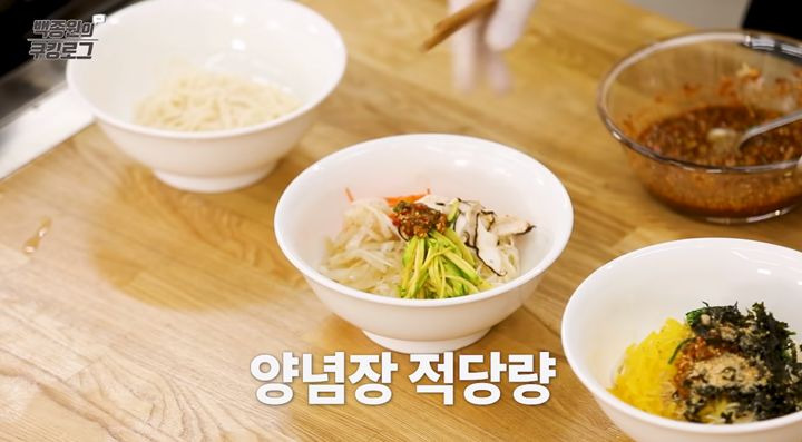 육수를 1시간 동안 끓여야 하니 시간이 꽤 걸릴 것 같다고 생각하실 수 있는데요, 그동안 양념장과 고명을 준비해두면 됩니다.